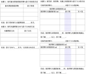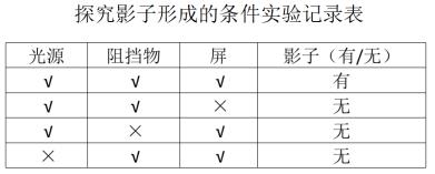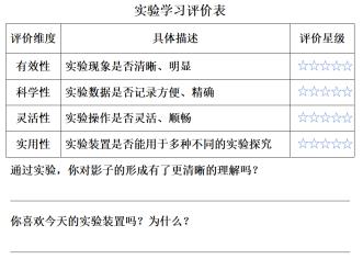 基于前面的引导学习,学生根据观察和表象基本能概括出形成影子的三个条件:光源、阻挡物和屏,但并不能科学表达影子形成的过程,说明学生对影子的理解仅停留在表象,这就需要借助创新实验装置,师生共同探究影子形成的过程,挖掘影子形成的科学原理。探究影子形成的条件实验记录表见图5