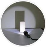 光源部分,由自制手电筒和滑轨组成,通过滑轨移动光源,滑轨旁设计刻度线,方便观察记录光源与阻挡物的距离。