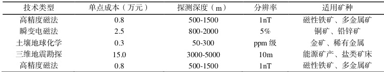 勘查技术经济指标优化需平衡精度与成本,表 1 显示不同勘查方法成本效益比:地面磁法(1:8.2)、激电测深(1:5.7)、土壤地球化学(1:12.3),数据表明化探在初步普查阶段性价比最优。深部找矿技术面临地温梯度(3°C/100m)和地应力 Φ>100MPa )挑战,微震监测系统可实时预警岩爆风险,保障3000 米以深勘查安全。绿色勘查要求采用便携式钻机减少生态扰动,生物复垦技术使临时用地恢复周期缩短至 2 年。