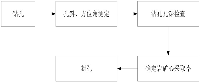 为准确确定钻孔位置,该项目在执行期间,项目运用 etrex 型号的手持 GPS 设备进行迅速定位。在初步观察地形地貌的基础上,相关人员进行探槽的开挖工作。本次施工共挖掘探槽 76 条,平均长度达到 67m ,槽壁间距为 1.3m,槽口和槽底宽度大约为 1.4m。工作人员经过细致分析,确定钻孔的确切位置,并依照既定流程执行勘探任务,具体流程详见图1。