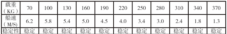 根据 3 组数据分析,3.6 米皮划艇安装船外机载人最快速度为 11.1m/s ,但船头翘起较高,皮划艇后尾板有脱落的风险。结合 3.6 米皮划艇安装 40 匹船外机,船速虽然较快,但船体稳定性较差,存在尾板有脱落和侧翻风险,得出 3.6 米皮划艇最适合安装 30 匹马力船外机,并且220KG——310KG 效果最佳,得出载人数约为 5 人左右。