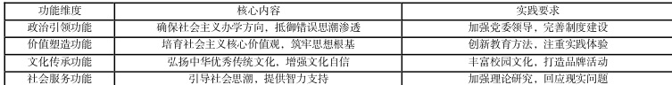 体。正如陕西师范大学宣传部张小东所比喻的,高校意识形态阵地建设需要"把'五根手指头'握成一个硬拳头",形成工作合力。表:高校意识形态阵地建设的多维功能分析