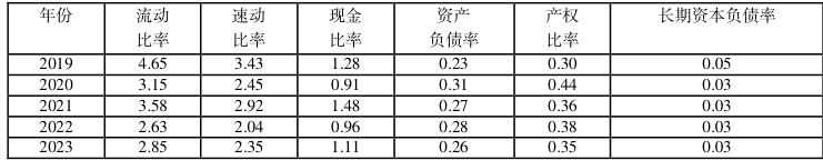 表 1 云南白药 2019-2023 偿债能力财务指标