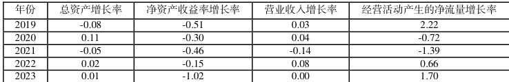 发展能力是从销售收入增长、资产规模扩张、利润提升等维度衡量企业在经营周期内规模扩大、可持续增长潜力及经营绩效提升趋势等方面的能力。本文选取总资产增长率、净资产收益率增长率、营业收入增长率、经营活动产生的净流量增长率这四项财务指标反映企业的发展能力。由表 4 可知,2019 年云南白药轻资产转型后,总资产增长率有正有负,反映资产规模扩张不稳定。净资产收益率增长率多为负,说明盈利增长动力不足。营业收入增长率虽有起伏但整体变化不大,2023 年甚至近乎停滞,经营活动净流量增长率波动大,2021 到2022 年负增长说明具有现金流压力。可见转型后,在资产积累、盈利提升、营收拓展及现金流管控上仍存挑战,需优化运营策略,强化发展动能,以适配轻资产模式可持续发展需求。因此,云南白药的发展能力指标表现仍有进一步提升的空间,需在保持现有优势的基础上,针对发现问题制定有效的改进措施,以实现持续健康发展。