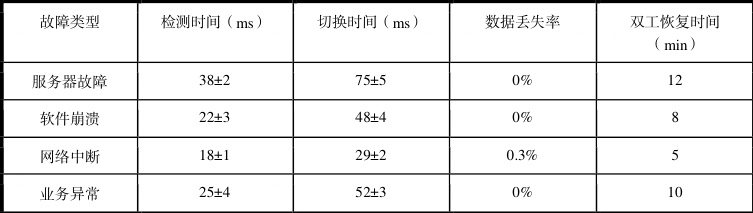 测试结果表明,各类故障场景下系统均能实现有效检测与切换,且数据丢失率控制在 0.3%以内,满足航天测运控业务零丢失要求。