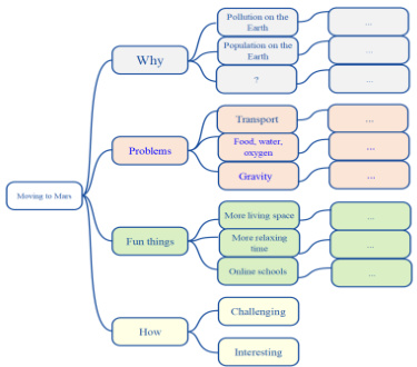 围绕 Moving to Mars 这个语篇主题,文章内容从为什么要移居火星,移居火星存在哪些挑战和未解的难题,火星生活较地球生活有哪些优势,逐级拓展语篇的结构化知识。教师通过研读语篇内容,可以引导学生通过思维导图将语篇内容结构可视化,从而能对语篇内容如何阐述主题有了更清楚的认识。在 why 中留一处空白,引发学生思考人类移居火星最需要什么的支持,从而更全面地架构起内容与主题的联系。此外,学生通过可视化的图形能够提炼出作者对于移居火星的观点和态度,为后续阅读活动的深入开展提供了支架。