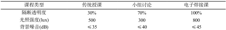 新的历史时期,数字技术和智能技术等在教学活动中的应用愈发广泛,因此,在对建筑空间进行弹性设计时,应从技术赋能的角度出发,切实有效地打造自适应智能环境。首先,要从基础设施预埋和环境调节模块入手,打造沉浸式交互系统。从基础设施预埋上来看,应当在天花板预留间距 2m 的滑轨、在墙面嵌入 AR 扫描触发点,以此支持扫码实体启动虚拟课程,为学生打造沉浸式学习环境。此外,还应在教室空间内积极集成光照调控模块、声学调控模块和温湿度智能调控模块等,支持教师可以根据实际课程类型,对场景模拟进行自由切换,并对隔断透明度、光照强度和背景噪音等进行动态调整(表 1 环境调节结果)。除此之外,还应加强对区块链协作平台的有效打造,即教室应当能支持多地师生通过 VR 头盔进入同一虚拟实验室,以此实现跨区域合作,并切实提升协作效率。