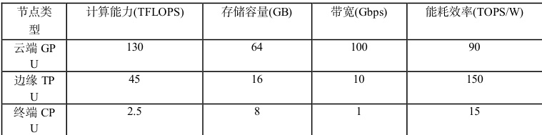 分布式节点的资源异构性可通过四元组模型 N(C,S,B,E)量化描述,其中 c 为计算能力(TFLOPS)、s 为存储容量(GB)、B 为网络带宽(Gbps)、E 为能耗效率(TOPS/W)。