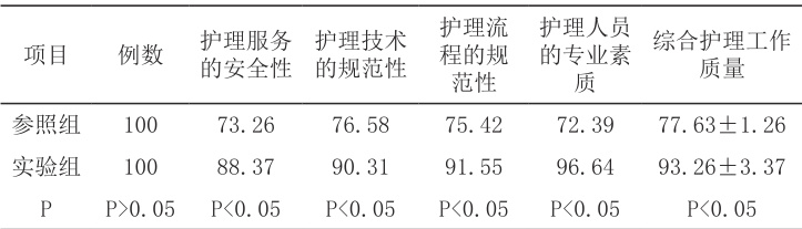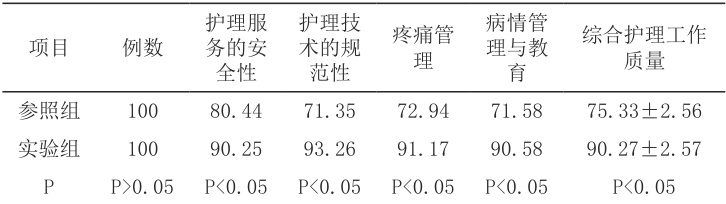 各项护理工作质量评分结果如表一所示,实验组与参照组护理工作质量评分结果具有显著差异,具有统计学意义( P<0.05) 。