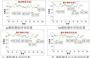 图3 中,2022 级《电机学 II》课程教学初期,通过课堂提问、 进行形成性评价,发现学号为 63、85、87、96 的四位学生的达成度偏低,分别为0.39、0.41、0.44、0 于是,对这四位学生进行重 关注, 通过课后一对一的辅导和答疑,使得他们在期中的达成度得到了提高,但达成度还是低于 0.6,继续对四位 谈心交流, 了解原因,针对性辅导,鼓励他们积极参与研讨等,课程结束的期末评价时,学号为 87 和96 的两位同学的总课程目标顺利达成,学号为 63 和 85 的两位同学的达成度得到了明显提高,但课程总目标还是没能达成,原因在于这两位学生知识点串联能力有待进一步提高,将参加课程重修。