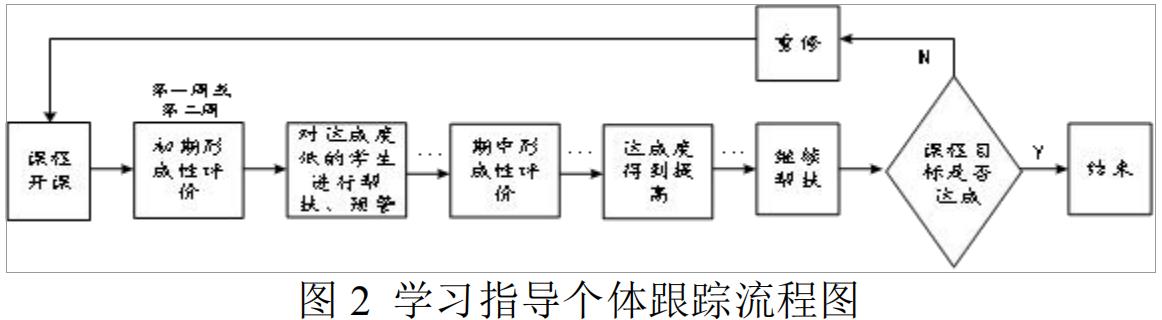 专业任课教师根据教学过程中开展的形成性评价结果,发现学生学习过程中存在的不足,对学生个体的课程学习情况进行跟踪与评估,及时对课程学习有困难的学生采取必要的帮扶措施,帮助学生提高课程学习成绩,学习指导紧密关联课程目标和毕业要求达成,形成了基于课程目标和毕业要求达成的专业学习指导个体跟踪流程,如图 2 所示。2022 级《电机学II》课程学习指导个体跟踪情况如图 3 所示,图中给出了课程目标2 的期初、期中、期末达成跟踪变化及期末课程目标总达成情况。