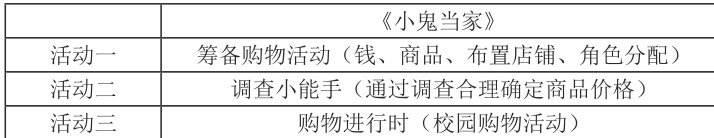 将教材中的综合实践活动作为开发项目的主要方向和宝贵素材,能达到事半功倍的效果。教材中的主题活动,一方面与学生的知识体系紧密相连,确保了学习内容的连贯性和深度;另一方面,它们也紧密贴合学生的年龄特征,充分考虑到了学生的认知发展水平和兴趣爱好。通过参与这些活动,学生不仅能够巩固和深化课堂所学知识,还能培养实践能力、创新思维和团队协作能力等,达到“积累基础知识、基本技能、基本活动经验,感悟基本思想”的“四基”目标,为学生的全面发展奠定坚实的基础。例如,以西师版一年级下册的综合实践活动“欢乐购物街”为素材,可设计主题为“小鬼当家”的项目式学习活动。