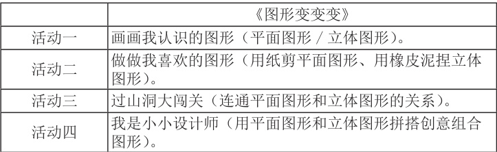 小学低段学生正处于好奇心旺盛、求知欲强的阶段。根据学生的好奇心确定项目式学习的活动项目,能够充分激发他们的学习兴趣和动机。另外,项目式学习强调学生的主体性和实践性,当活动项目符合学生的好奇心时,他们会更加主动地参与进来,积极寻找信息、解决问题。这种主动学习和探索的过程不仅有助于培养学生的自主学习能力和批判性思维,还能让他们在实践中体验到学习的乐趣和成就感[4]。比如,小学低段的学生往往对图形有着天然的浓厚兴趣和强烈的探索欲望,为此,可以设计主题为“图形变变变”的项目式学习活动。