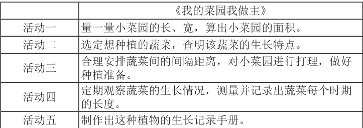 例如,学校的小菜园长期野草丛生,很多孩子跃跃欲试,想争做劳动小能手,对此,可设计主题为“我的菜园我做主”的项目式学习活动。