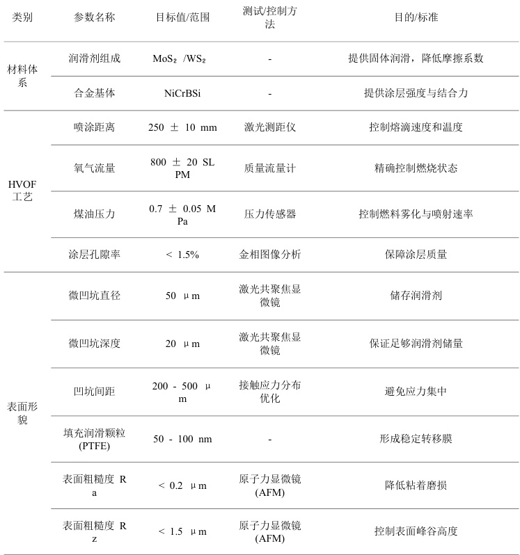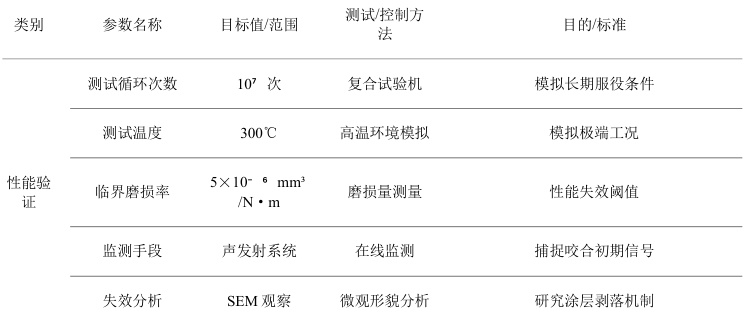 表1:主动调控防咬合涂层的设计参数与性能指标