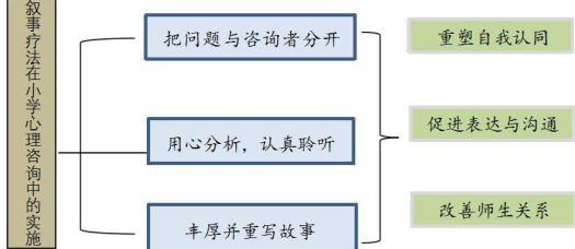 社会结构与家庭结构理论相结合共同衍生出的叙事疗法,从上个世纪八十年代末期开始出现。叙事疗法的主要特征就是尊重生命与以人为本,将学生与问题分开治疗。最重要的目的就是提高学生的心理健康,促进师生之间的沟通交流,让学生认清现实。在叙事疗法中,学生被鼓励通过分享自己的故事和经历来揭露并重新审视内心的思想和情感,在此过程中,治疗师会帮助他们意识到积极的情绪,同时激发他们去主动塑造并追求这些积极的情绪。同时,治疗师也会引导学生关注自己的积极面,尝试把他们具体到日常生活中,并采取行动来强化积极的心态。