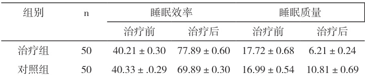 通过对两组患者的睡眠效率和睡眠质量进行对比治疗组患者的各项指标均由于对照组(详见表 1)