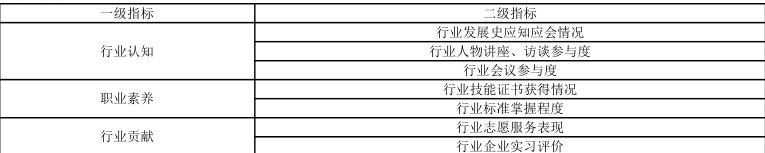 特色维度针对行业高校设计 3 个一级指标、7 个二级指标,核心目标是考察受助学生“反哺行业”的潜力与能力。“行业认知”包括行业发展史知识测试得分、行业领军人物访谈参与度等,深化受助学生对行业的理解;“职业素养”指标直接对接行业用人需求,涵盖“行业技能证书获取率”“行业标准掌握程度”等关键数据;“行业贡献”指标关注学生的实际反哺行为,通过“行业志愿服务表现”“行业企业实习评价”等,评估学生对行业的价值贡献。特色维度的指标需与具体行业深度绑定,具体指标如表 4 所示: