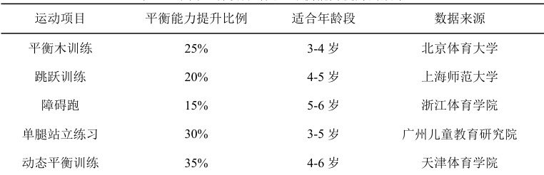 表 1:不同运动项目对儿童平衡能力提升的效果