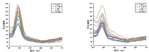 由图 1 可知,经四环素加标测试后,荧光纸芯片展现出良好的检测性能。不同浓度四环素加标的荧光纸芯片,其最大荧光强度均集中在 610-620nm 附近,峰型稳定。将各加标芯片荧光强度与初始芯片数据对比发现,随着四环素浓度升高,芯片荧光强度增量逐渐增大,浓度与荧光强度增量呈现明显的正相关趋势。实验结果表明,荧光纸芯片能够对不同浓度四环素产生稳定且可区分的荧光响应,具备用于荧光检测的可靠性。