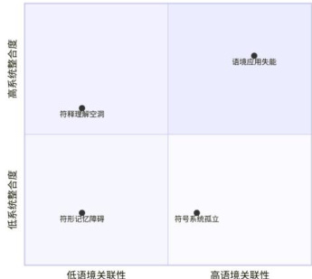 (四)语境应用失能(Contextual Application Failure)。在模拟情境测试中,要求学生根据一段英文故障描述“The engine misfires intermittently,especially during acceleration”指出可能相关的部件术语,大部分学生表现不佳。根源剖析:这是对技术符号语境依赖性的忽视。符号的意义最终在应用中得以实现。如果教学过程始终将术语剥离于其赖以生存的真实技术语境(如阅读技术手册、诊断故障、撰写技术报告),学生就无法完成从“认知”到“调用”的关键一步,所学知识便成为“屠龙之技”。