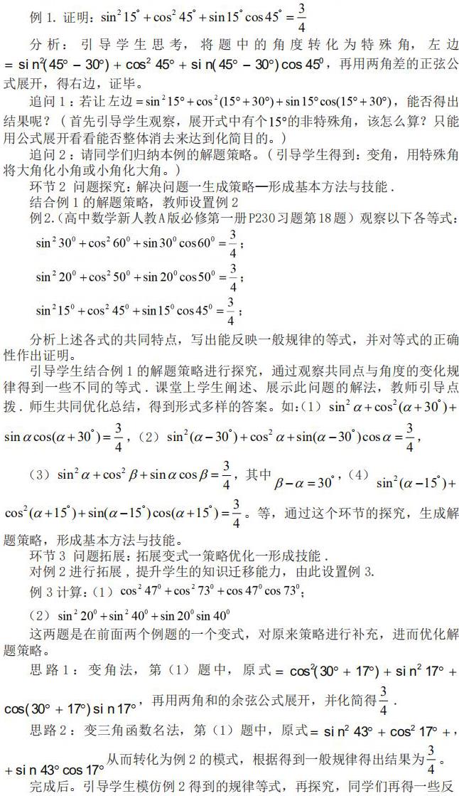 基于‘导·用’式教学法的目标,笔者设计了一个包括问题引导、学以致用、归纳总结及等三个主要环节。下面以高中数学新人教A 版必修第一册第五章《三角函数》5.5.1 两角和与差的正弦、余弦和正切公式的练习课的教学过程为例说明‘导·用’式教学法的主要环节。