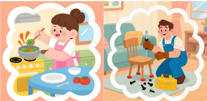 例如,在教学“我们的衣食之源”单元(核心是“珍惜劳动成果”)时,教师可以这样开展活动:第一步,课前布置“家庭劳动小调查”任务,让学生记录家人一天的劳动(如“妈妈做饭”“爸爸修家具”),并用图画或文字描述“劳动过程中遇到的困难”;第二步,课堂上组织“劳动分享会”,学生展示调查结果,教师引导讨论“为什么要珍惜劳动成果”(如“妈妈做饭要买菜、洗菜、炒菜,很辛苦,所以不能剩饭”);第三步,设计“校园 + 家庭”双实践任务——校园内,让学生分组负责“班级绿植养护”,制定“浇水时间表”“黄叶修剪记录”;家庭中,让学生承担“餐后餐具清洗”或“自己整理书包”的任务,每天用“劳动打卡表”记录完成情况(如“今天我洗了 3 个碗,用了5 分钟”);第四步,一周后开展“劳动成果展”,学生分享“养护绿植的小技巧”“洗碗时如何节约用水”,教师引导总结“劳动不仅能帮助别人,还能让自己学会坚持”。通过这样的实践,学生不仅将“珍惜劳动成果”的思政理念转化为实际行动,还在制定计划、完成任务、分享经验中提升了自主管理能力与责任意识,实现思政践行与综合素养的同步提升。