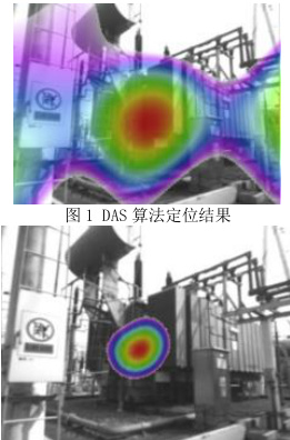 为验证所提出的 SEN-WBF 波束形成算法在变压器低频振源定位中的性能优势,本文搭建了典型的声成像实验平台,并分别使用传统DAS 算法与本文优化算法对相同工况下的低频激振信号进行声图重建。图1 为传统DAS算法生成的声强图谱结果,图 2 为 SEN-WBF 优化算法在同一激振源下的成像图像。图中彩色部分为声源聚焦区