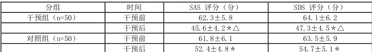 注:*代表较干预前P<0.05;△代表干预组较对照组
