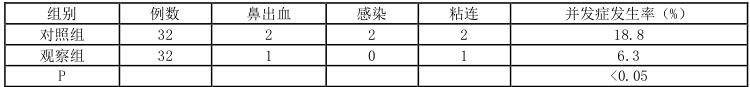 观察组并发症发生率为6.3%,显著低于对照组18.8%(P<0.05)。见表3。