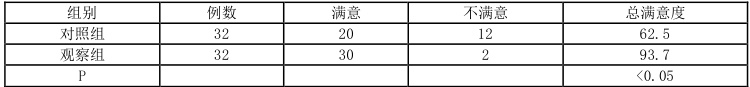 观察组满意率达93.7%,对照组为62.5%,差异显著(P<0.05)。见表4。