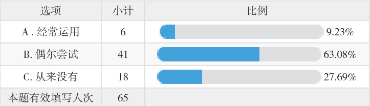 教师教学态度与实践分析。从调查问卷我们发现,我校有 63.08% 的教师偶尔尝试将项目学习理念与语文综合性教学实践结合(见图五),这表明教师有将项目学习应用于教学的意愿,尽管目前处于摸索阶段,但随着经验的积累和对项目学习的深入理解,教师能够更好地将项目学习融入小学语文综合性学习中。教师积极的教学态度和实践探索意愿为项目学习在小学语文综合性学习中的应用提供了人力支持,有助于推动研究的进一步实施。