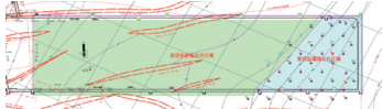 注浆加固采用地面直孔结合定向斜孔逐排施工驱水固沙,共设计 43 个地面直孔或者定向斜孔,一开设计工程量10045m,二开设计工程量 1290m,共计钻探工程量 11335m,预计注浆量 32000t。钻孔平面布置见图 2。