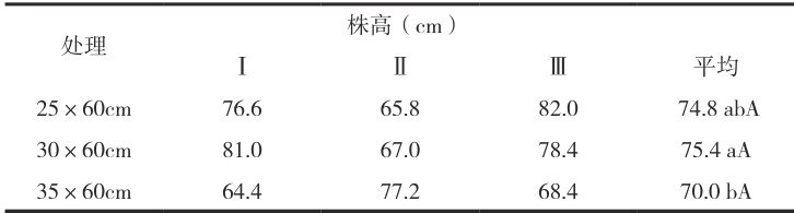30×60cm 密度下株高显著高于 35×60cm ( P<0.05 )