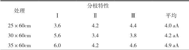 2.2 不同种植密度对加工番茄分枝特性的影响从表2 可以看出,方差分析表明,不同种植密度对垦番3 号分枝特性影响差异不显著。表2 不同种植密度对加工番茄分枝特性的影响