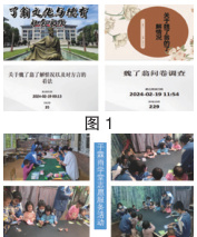 在学习过程的评价方面以了翁文化主题班会课”话经典,说责任“为例,学生以组为单位自选魏了翁的经典诗词作品如《醉落魄 . 人日南山约应提刑懋之》、《水龙吟 . 登白鹤山》、《观南堤》等结合责任意识进行演讲比赛,采用学生自选裁判与教师评价相结合,评价从表现力、服装、对了翁文化理解等角度出发,分别设计了最佳风尚奖、最具舞台新星奖、最佳创意奖,通过这个活动学让生共情了翁先生忧国忧民的的社会责任感和家国情怀,帮助学生牢固爱国情怀、培育责任意识。在这个过程中需记录学生的参与情况进行定量评价,收集课后感作为形成性评价。同时把家长与社会评价纳入到量性评价和形成性评价中来,例如 1. 使用问卷星进行了翁文化与德育的社会实践和关于魏了翁了解情况的问卷调查(如图 1),实时了解学生在学习了翁文化后对了翁文化的兴趣和态度变化。并利用家长会、家长访谈,收集家长对学生在家践行“了翁文化”中有关中华传统美德“孝”的情况进行评价,在家校共育中促了翁文化传播与落实。2. 通过学生在社会实践中的表现, 例如在霖雨学堂参与志愿者活动时,从是否能够向他人宣传了翁文化的价值内涵,是否有积极参与活动主动性以及在参与时能否有能动性进行评价(如图2)。