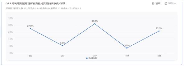 教师对现有国际理解教育教材资源的满意度较低,有待进一步提高。