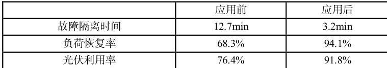 本文围绕故障隔离时间、负荷恢复率和光伏利用率构建量化评价体系,对比人工智能技术应用前后的配电网检修成效,结果如表 1 所示。