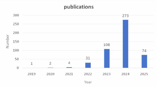 高校一站式学生社区研究文献在不同年份的发表数量能够体现其研究热度和发展历程。图 1 显示出高校一站式学生社区研究年代分布图。从整体上看,高校一站式学生社区研究的发文量在 2019 至 2025 年呈现了逐年上升的趋势,在2024 年达到顶峰后发文量逐年减少,反映出高校一站式学生社区相关研究是近些年来研究的热点所在,目前仍然存在较大的研究空间。