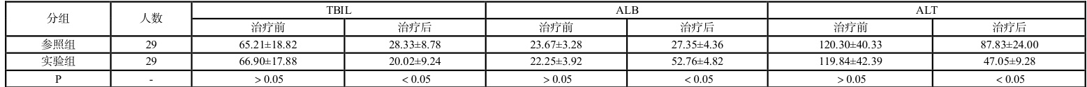 表 3 对比两组实验对象肝功能指标变化情况