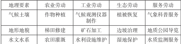 2. 劳动教育:从地理学科视角解析劳动教育的空间维度,可将其划分为:空间性劳动,如农业区位选择中的劳作实践;人地互动劳动,如生态修复中的环境干预;文化性劳动,如传统产业技艺传承。
