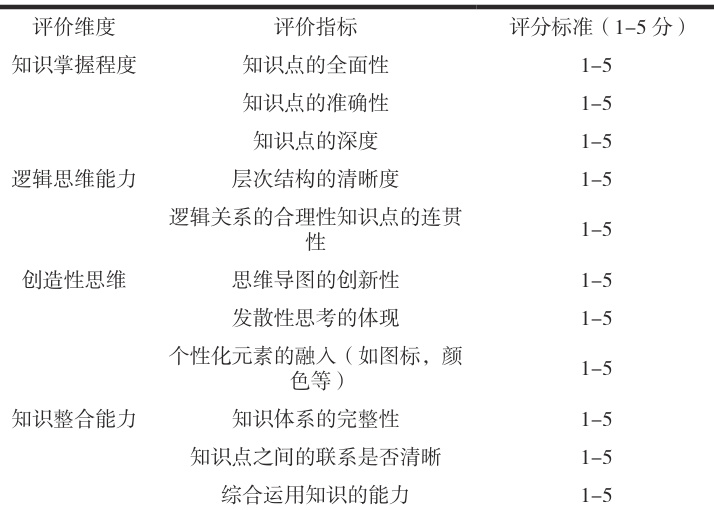 4. 教师评价:教师根据学生的思维导图作品和评价表,进行综合评价,提供反馈和建议。