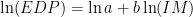 结构需求参数(Engineering Demand Parameter, EDP)与风荷载强度参数(Intensity Measure, IM)之间的概率关系通常被认为服从对数线性关系或对数二次方关系,可以分别描述为 [20, 21] :