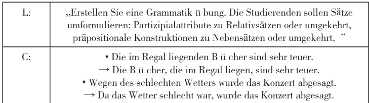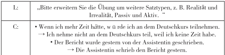 这轮对话有效补充了其他重要语法结构,使练习形式更加丰富,有助于更全面地训练学生多句法转换能力。Schritt 4: 形式调整 - 局部改写,突出目标结构为降低学生的认知负担,聚焦目标语法点,教师还可以将题目要求由整句转写改成局部划线改写,明确学生需要处理的语法结构: