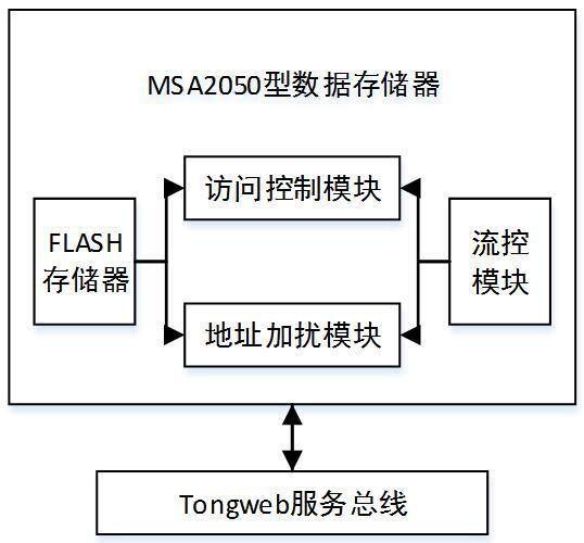 数据存储控制器作为系统服务器访问组的核心硬件,能够存储船舶智能终端中的数据,并且随时调用数据,提高了数据的安全性。本文使用 MSA 2050 型数据存储器提高了数据的调用速度,数据存储控制器的架构详见图 2。主要包括地址加扰模块、FLASH 存储器和访问控制模块等,利用流控模块接受服务总线信号之后,根据访问控制模块识别信号的访问权限,在此过程中能够以地址加扰模块打乱智能船舶终端的位置数据,之后访问存储区,对先关的数据进行调用、访问与离线存储[3]。