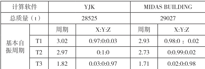 多遇地震下弹性静力分析主要采用盈建科结构设计软件(YJK)和 MIDAS BUILDING 软件进行计算。主要计算结果见表 1。