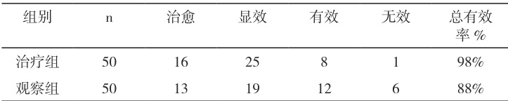 2.2 两组患者的症状缓解时间对比 详见表 2