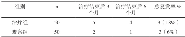 (2)远期疗效观察:对治疗结束后的 3 个月和 6 个月两个时间节点进行随访,比较两组患者的症状复发率。