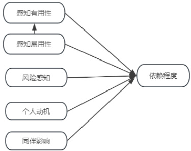 根据 ATM 和 TAME-ChatGPT 整合模型,结合本研究模型可知,五个变量因子与依赖程度之间存在相关关系,其中感知易用性通过感知有用性的中介作用正向影响依赖程度,风险感知负向调节感知有用性与依赖程度的关系,由于 TAME-ChatGPT 模型强调环境与个体行为的交互作用,因此本研究认为个人动机和同伴影响也可能影响依赖程度。基于此,提出以下假设: