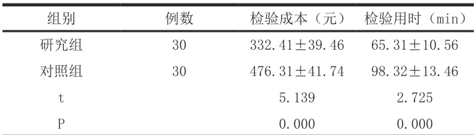 研究组患者检验成本与检验用时显著优于对照组( P<0.05 ),见表2